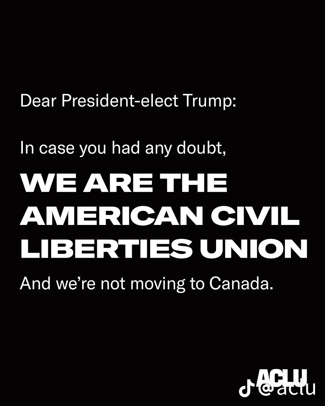They sent a letter to President Trump the day after the election (see below the letter in full) and said, “the ACLU is not moving to Canada.” They went on to explain what they do and how they do it. What if we decided to take what is now a 1.5-million membership and push to have it be 30 million by the end of 2025? Thirty million people.