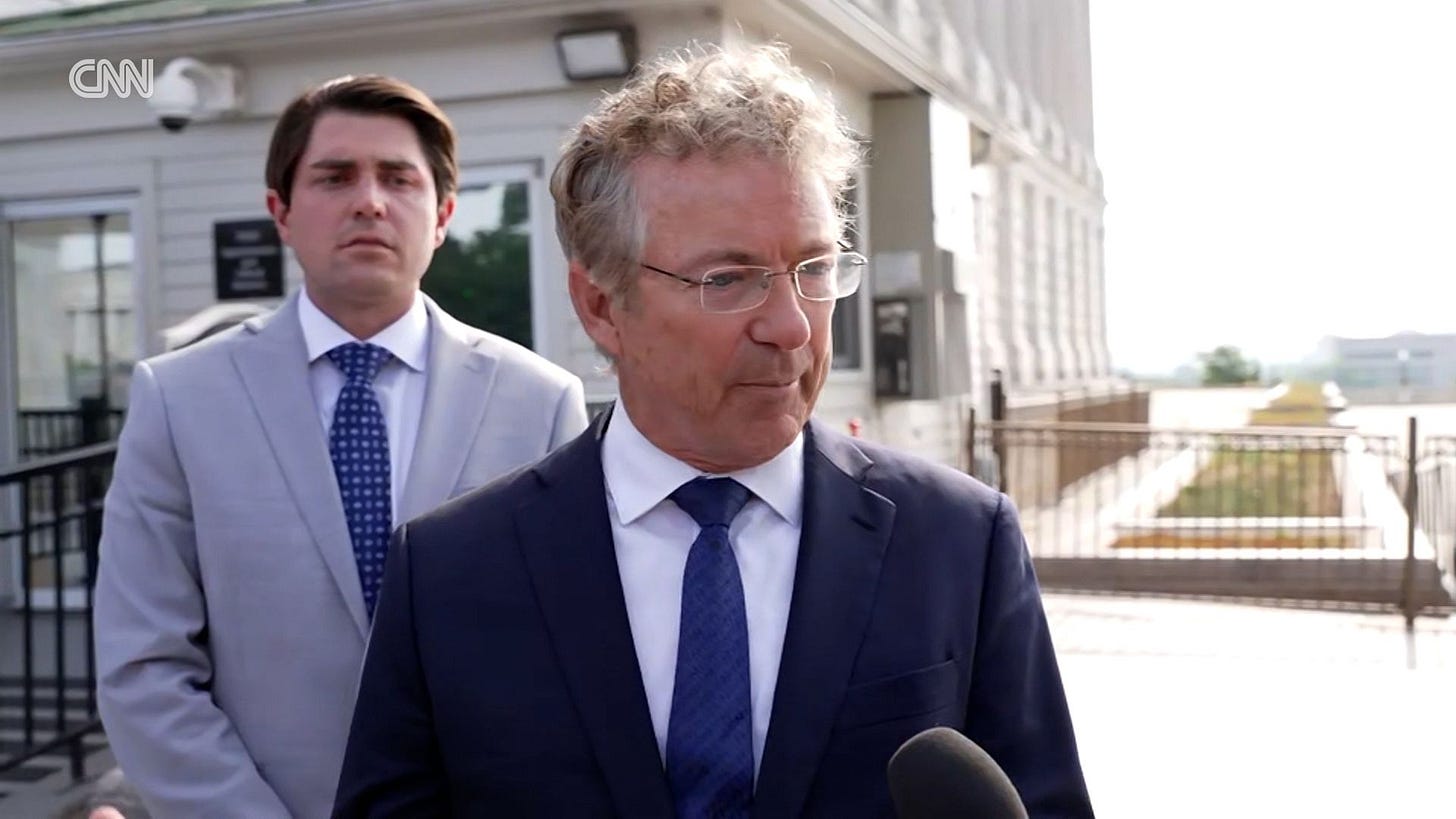 And Rand Paul said that his grandson won’t be able to be there. Well, I’m sorry for that Rand, but your grandson is not who I am thinking about right now.