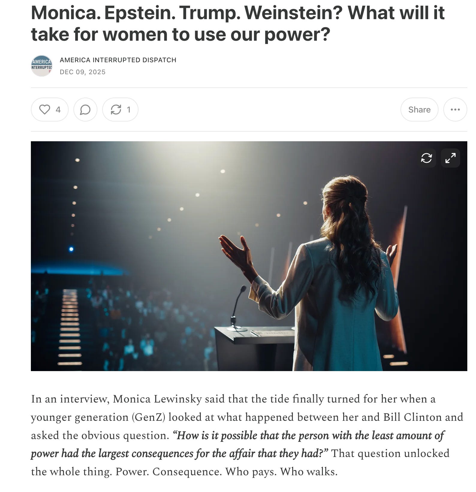 What they did to her was devastating. She was young, powerless, and disposable, and they destroyed her to protect power. I participated in that destruction. I fell in line. I swallowed the framing. I mocked, dismissed, minimized. I have apologized for that because she deserved better, and we failed her.