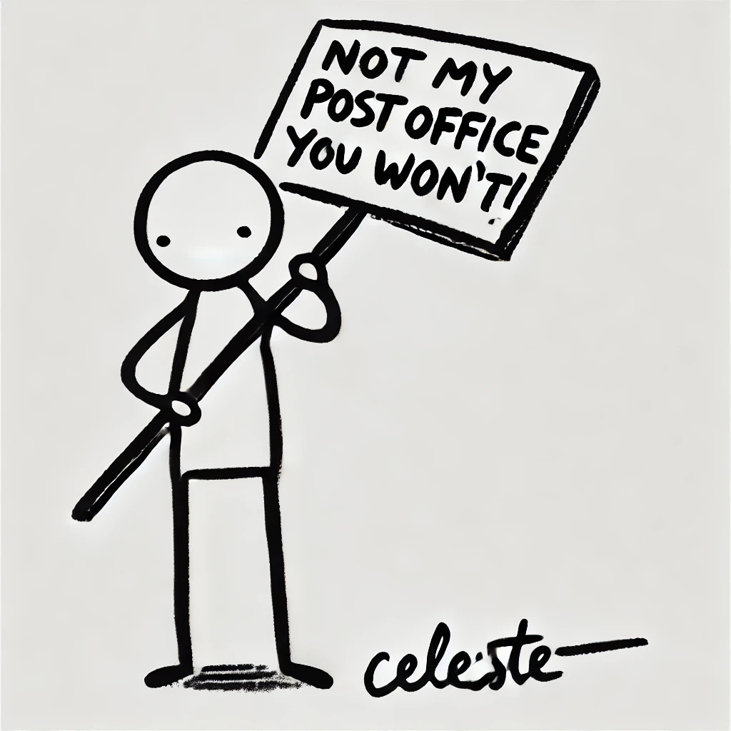 I will stand there with—I imagine—not more than a dozen neighbors, to let the people working at the post office know that I see them, that I’m worried, and that I will try to make sure they can continue to live a life that includes healthcare. And because I do not want to buy stamps from an Elon Musk mini-me, or—God forbid—even him himself. Nope.